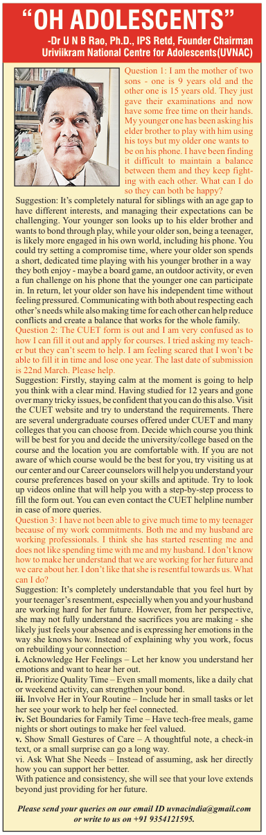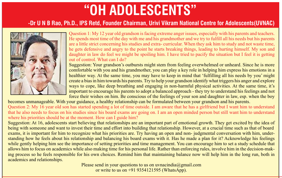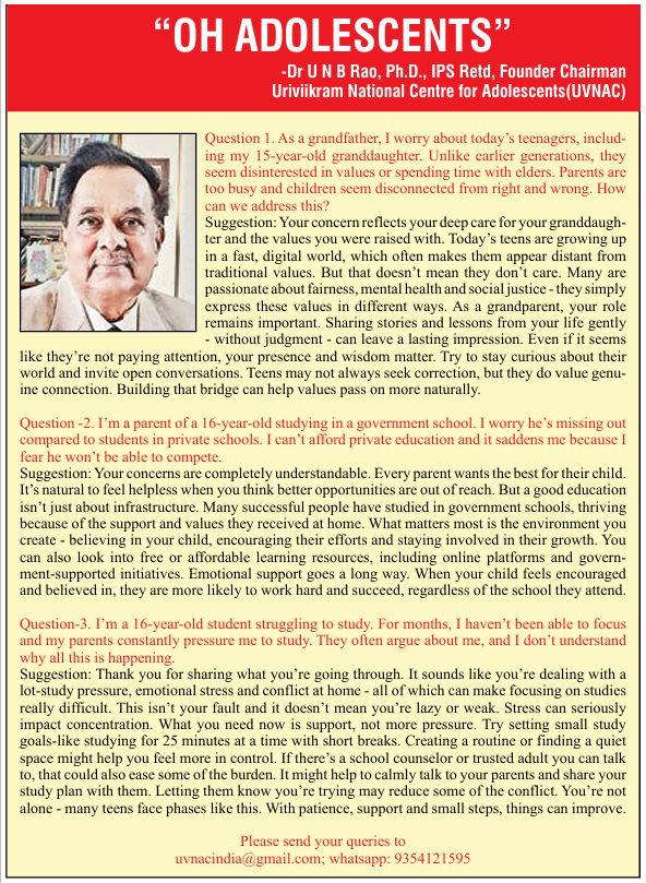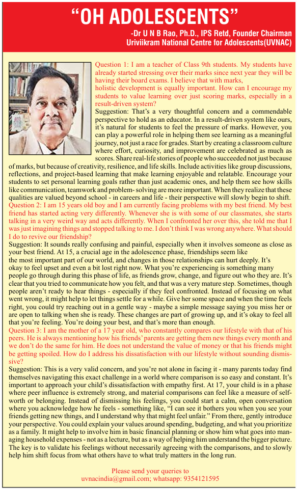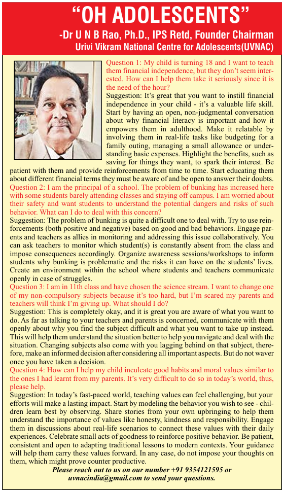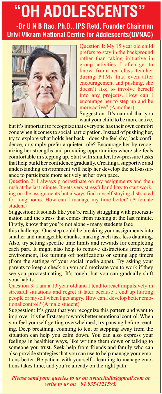 Urivi Vikram Charitable Trust (UVCT) is a national level non-government and non-profit Organization, with focus on the social and economic empowerment of young adults. The Trust rightly visualizes that due care must be given to the stage of ‘Adolescence’ (aged between 10 and 19 years), a period of rapid development and identity crisis in one’s growth. Founded by Dr. UNB Rao and his wife, Ms. Chaya, in 1991, with the support of 60 other professionals and well-meaning citizens, The trust was established in the fond memory of Dr. Rao’s only son, Mr. Urivi Vikram, who lost his life at a prime age of 21-22 years, in a fatal road accident in Delhi. The Rao family tried to reverse the arrow of sorrow that had hit the family unexpectedly, by working for the empowerment of adolescents and young adults.