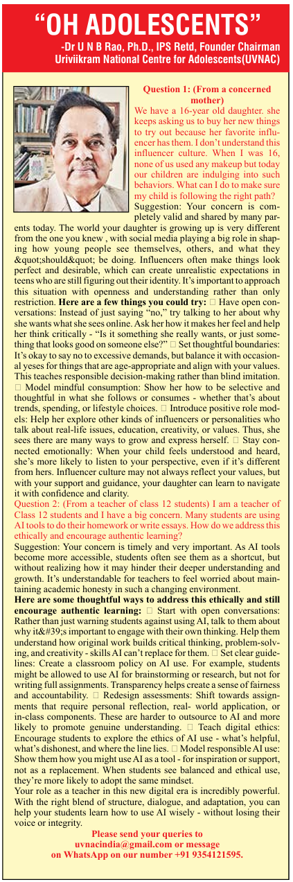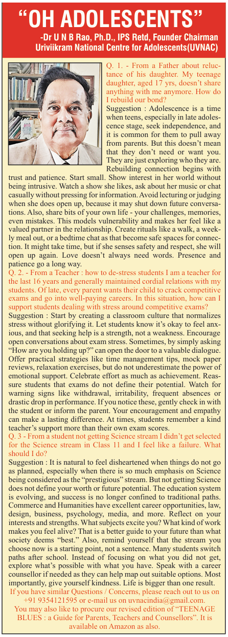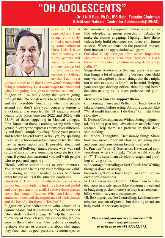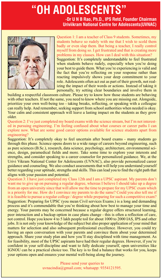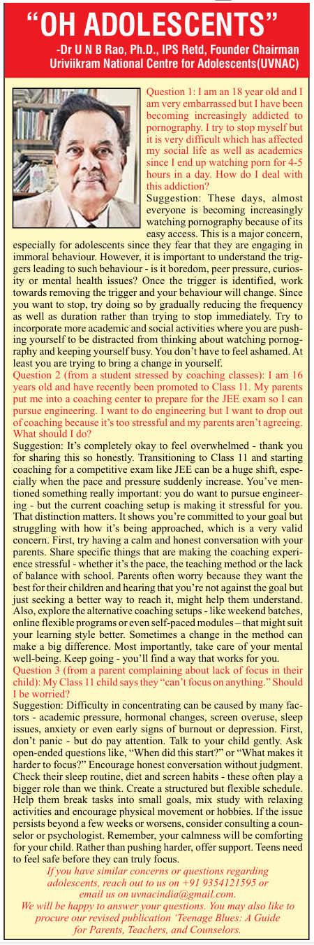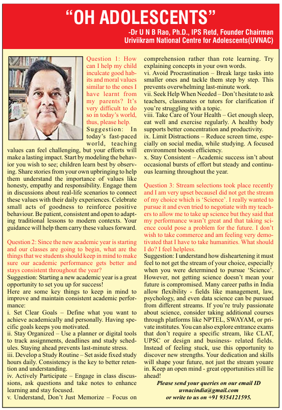 Urivi Vikram Charitable Trust (UVCT) is a national level non-government and non-profit Organization, with focus on the social and economic empowerment of young adults. The Trust rightly visualizes that due care must be given to the stage of ‘Adolescence’ (aged between 10 and 19 years), a period of rapid development and identity crisis in one’s growth. Founded by Dr. UNB Rao and his wife, Ms. Chaya, in 1991, with the support of 60 other professionals and well-meaning citizens, The trust was established in the fond memory of Dr. Rao’s only son, Mr. Urivi Vikram, who lost his life at a prime age of 21-22 years, in a fatal road accident in Delhi. The Rao family tried to reverse the arrow of sorrow that had hit the family unexpectedly, by working for the empowerment of adolescents and young adults.